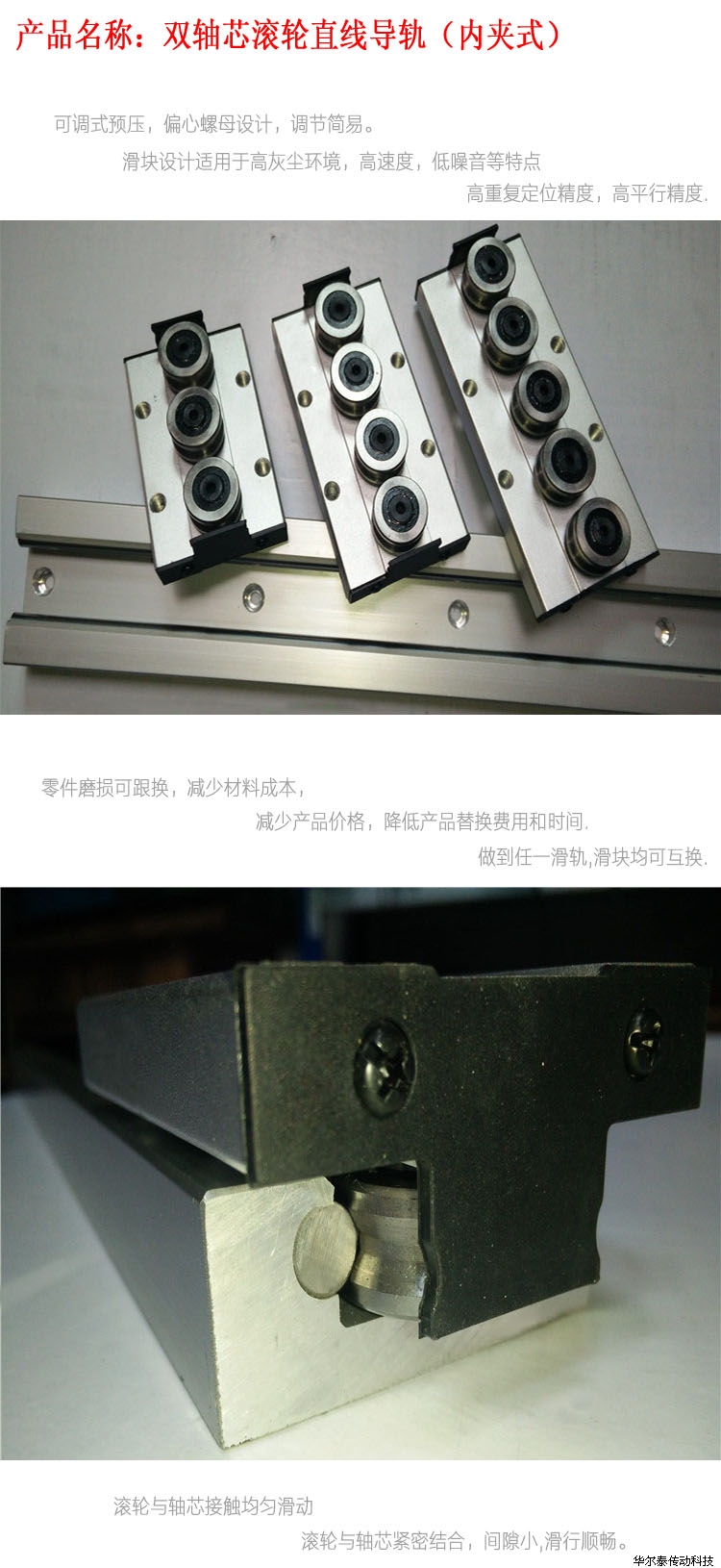 內置雙軸芯導軌SGR系列:SGR15/15N SGR20/20N SGR25 SGR30 內置雙軸芯導軌SGR系列應用領(lǐng)域:自動(dòng)化設備、搬運系統、自動(dòng)門(mén)導軌、焊接設備、切割設備、輸送設備、噴漆設備等機械設備上具有很廣的應用范圍。 二、產(chǎn)品特點(diǎn) 1、防銹蝕性:雙軸心滑軌和滑塊為國際標準6063T5鋁合金材質(zhì),精密模具成型,表面本色陽(yáng)極氧化處理或發(fā)黑電鍍特殊處理,再加上高周波熱處理鍍鉻導向軸,硬度HRC62±2 表面鍍鉻保證不生銹。不僅外形美觀(guān)而且具有優(yōu)異的耐酸堿,耐腐蝕效果。 4、低成本化